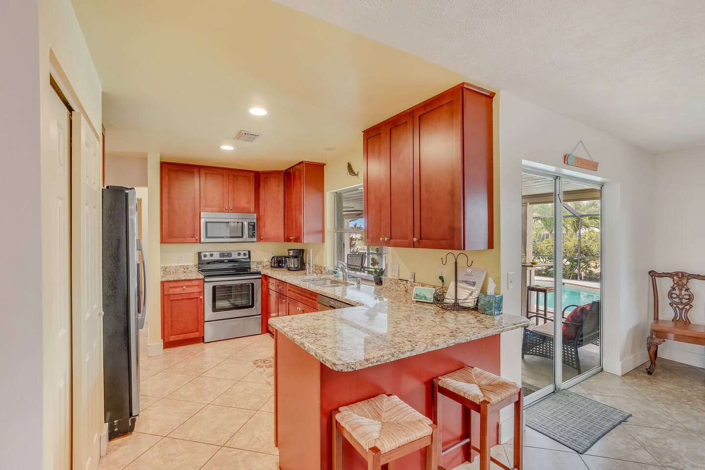 An exhilarating Florida getaway awaits at this Cape Coral vacation rental! This 3-bedroom, 2-bathroom property provides all the comforts of home, so your crew can relax and enjoy the beautiful surroundings. Start your days by sipping coffee on the patio or taking a swim before venturing out to explore the area. Visit outdoor spots like Sirenia Vista, take a drive to Sanibel Island, or book a tee time at lush golf courses. Afterward, head inside for a relaxing movie night and a home-cooked meal!