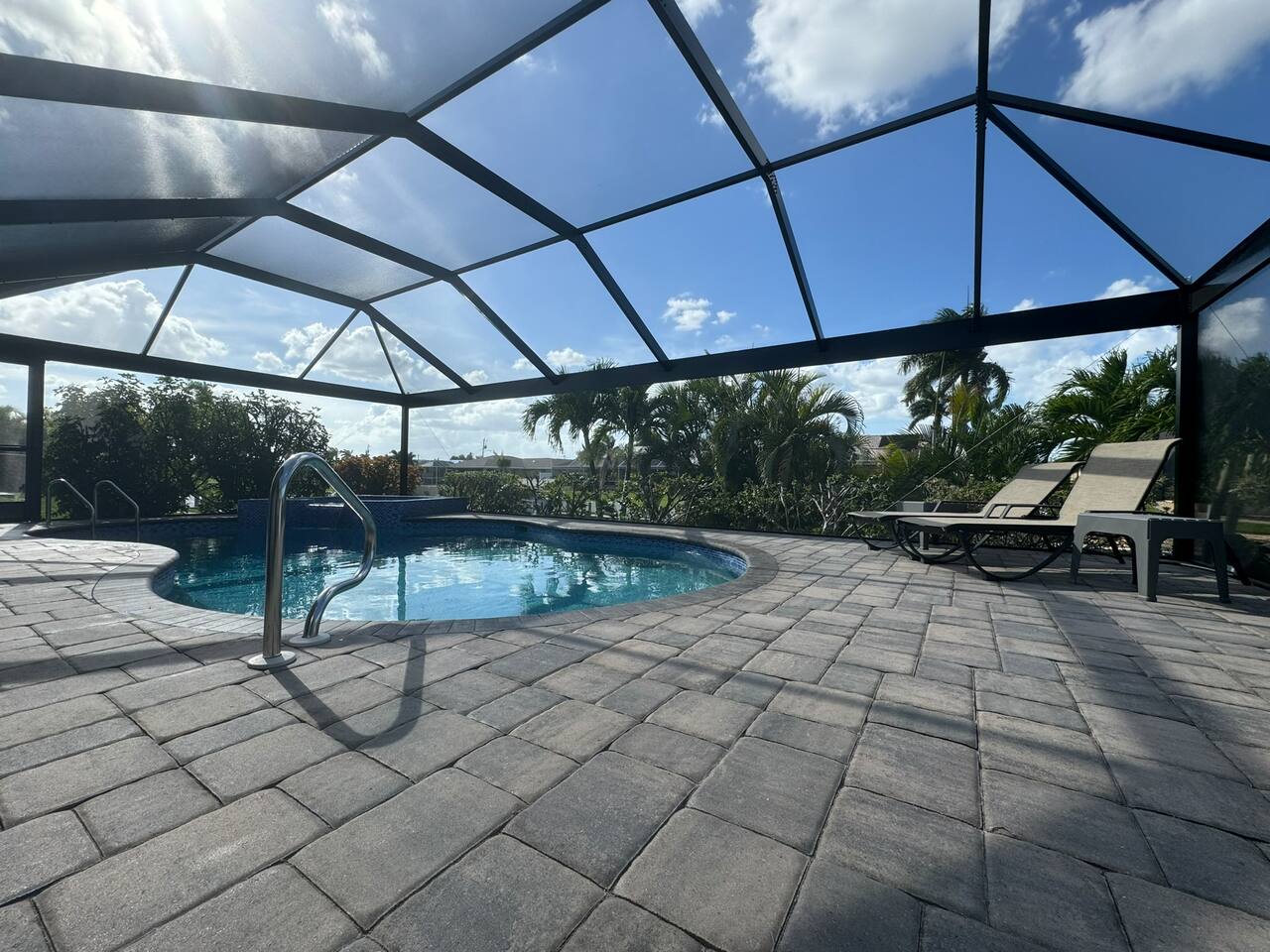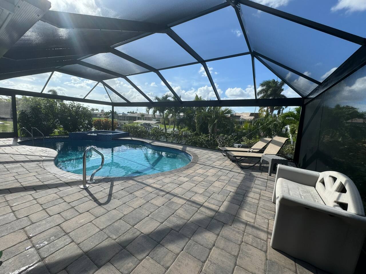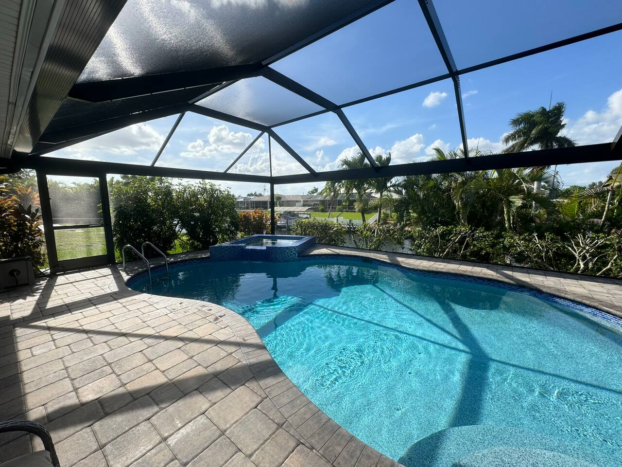 Welcome to Your Cape Coral Oasis! This 3-bedroom, 2-bathroom vacation home is designed for comfort and relaxation, featuring a fully private heated pool and spa, spacious interiors, and all the amenities needed for a memorable stay. 🏡 Property Highlights 🏊 Private Heated Pool & Spa – Enjoy year-round swimming in the heated pool or unwind in the spa. The backyard area ensures a secluded and tranquil experience. 🛋️ Spacious Living Room – Bright and airy, featuring comfortable seating and a large smart TV, perfect for relaxing after a day of exploration. 🍽️ Fully Equipped Kitchen – Prepare delicious meals in the modern kitchen with stainless steel appliances, ample counter space, and all necessary cookware and utensils. 🥂 Dining Area – Adjacent to the kitchen, the dining area provides seating for six, making it ideal for family meals or entertaining guests. 🚗 Parking – Driveway parking available for multiple vehicles. 📶 WiFi & Entertainment – High-speed WiFi, streaming-capable TVs, and a cozy atmosphere to ensure a relaxing stay. 🛏️ Bedrooms & Sleeping Arrangements Master Suite King-size bed, perfect for ultimate relaxation. Walk-in closet with ample storage. En-suite bathroom with walk-in shower and dual sinks. Bedroom 2 Queen-size bed, ideal for couples or solo travelers. Cozy and private space for a restful stay. Bedroom 3 – Family-Friendly Bunk Room Twin-over-twin bunk bed plus an additional twin bed, ideal for kids, friends, or extra guests. Large wall-mounted smart TV for entertainment. Black dresser for ample storage. Two wooden chairs and a small nightstand with a lamp for convenience. Large window providing plenty of natural light. Ceiling fan to keep the room comfortable and airy. 🌴 Outdoor Living Space Private heated pool & spa for year-round enjoyment. Covered patio with outdoor seating and a dining area, perfect for alfresco meals or relaxing poolside. 📍 Convenient Location Minutes from beaches, shopping, and dining Close to Sirenia Vista Park, Sanibel Island, and local golf courses Easy access to outdoor adventures and waterfront attractions This home is perfect for families, couples, and small groups looking for a peaceful and luxurious retreat. Whether you're here to explore, relax, or soak up the Florida sunshine by the pool, this rental offers the perfect escape! 📩 Have any questions? Let us know—we’re happy to help make your stay unforgettable! 😊