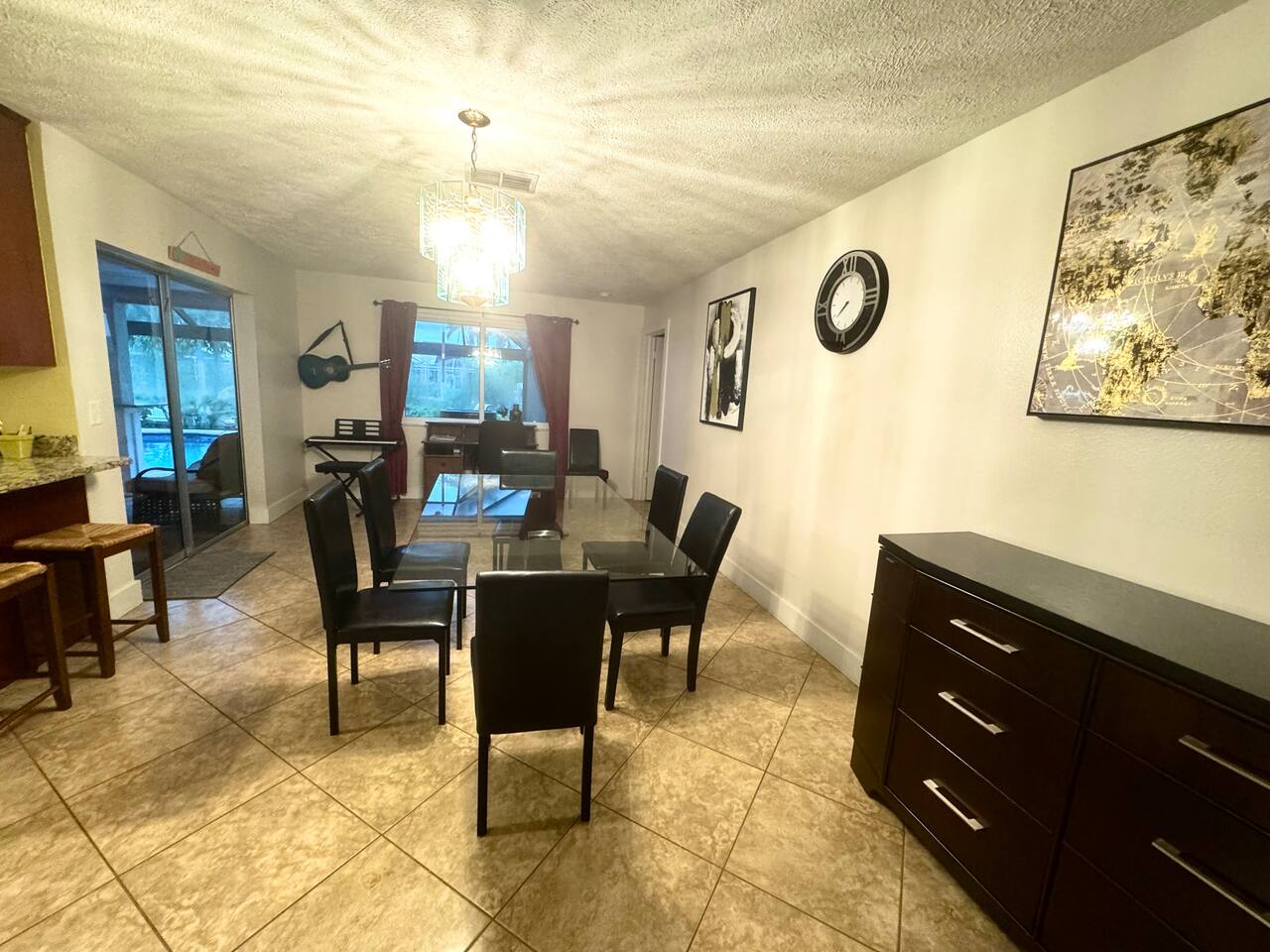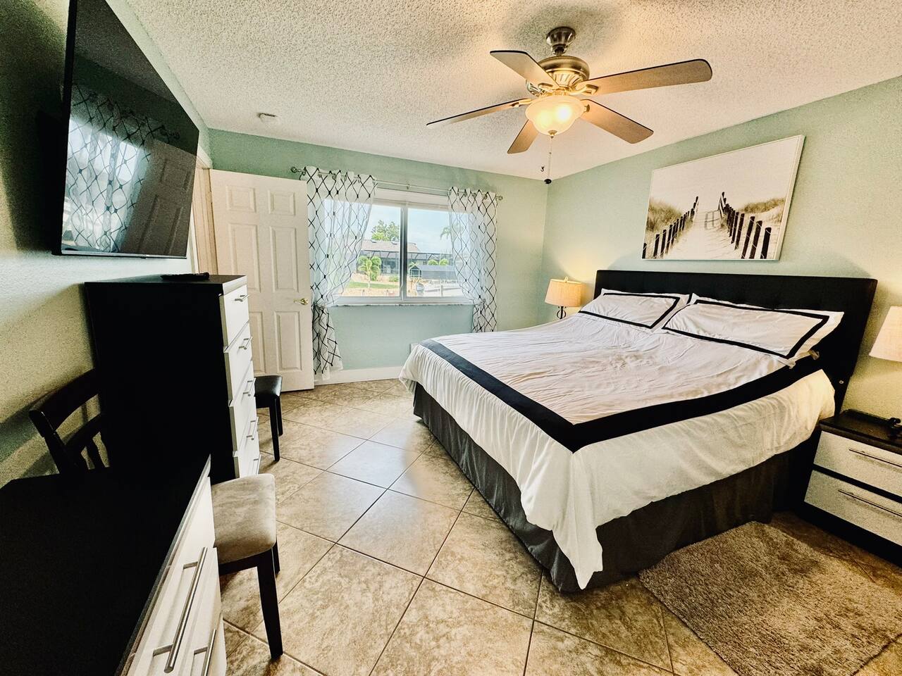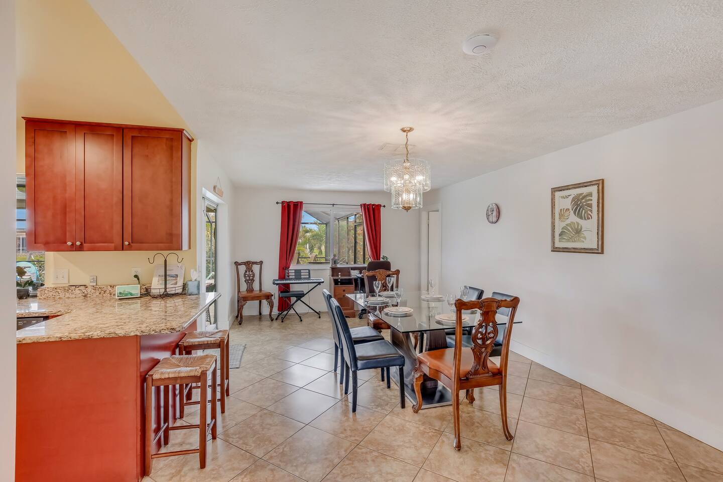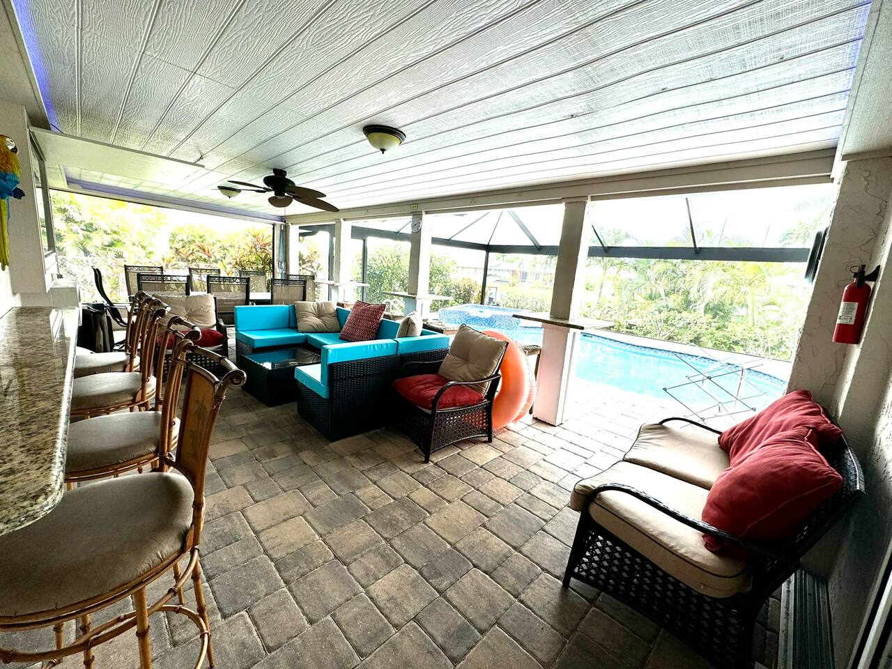 Welcome to Your Cape Coral Oasis! This 3-bedroom, 2-bathroom vacation home is designed for comfort and relaxation, featuring a fully private heated pool and spa, spacious interiors, and all the amenities needed for a memorable stay. 🏡 Property Highlights 🏊 Private Heated Pool & Spa – Enjoy year-round swimming in the heated pool or unwind in the spa. The backyard area ensures a secluded and tranquil experience. 🛋️ Spacious Living Room – Bright and airy, featuring comfortable seating and a large smart TV, perfect for relaxing after a day of exploration. 🍽️ Fully Equipped Kitchen – Prepare delicious meals in the modern kitchen with stainless steel appliances, ample counter space, and all necessary cookware and utensils. 🥂 Dining Area – Adjacent to the kitchen, the dining area provides seating for six, making it ideal for family meals or entertaining guests. 🚗 Parking – Driveway parking available for multiple vehicles. 📶 WiFi & Entertainment – High-speed WiFi, streaming-capable TVs, and a cozy atmosphere to ensure a relaxing stay. 🛏️ Bedrooms & Sleeping Arrangements Master Suite King-size bed, perfect for ultimate relaxation. Walk-in closet with ample storage. En-suite bathroom with walk-in shower and dual sinks. Bedroom 2 Queen-size bed, ideal for couples or solo travelers. Cozy and private space for a restful stay. Bedroom 3 – Family-Friendly Bunk Room Twin-over-twin bunk bed plus an additional twin bed, ideal for kids, friends, or extra guests. Large wall-mounted smart TV for entertainment. Black dresser for ample storage. Two wooden chairs and a small nightstand with a lamp for convenience. Large window providing plenty of natural light. Ceiling fan to keep the room comfortable and airy. 🌴 Outdoor Living Space Private heated pool & spa for year-round enjoyment. Covered patio with outdoor seating and a dining area, perfect for alfresco meals or relaxing poolside. 📍 Convenient Location Minutes from beaches, shopping, and dining Close to Sirenia Vista Park, Sanibel Island, and local golf courses Easy access to outdoor adventures and waterfront attractions This home is perfect for families, couples, and small groups looking for a peaceful and luxurious retreat. Whether you're here to explore, relax, or soak up the Florida sunshine by the pool, this rental offers the perfect escape! 📩 Have any questions? Let us know—we’re happy to help make your stay unforgettable! 😊
