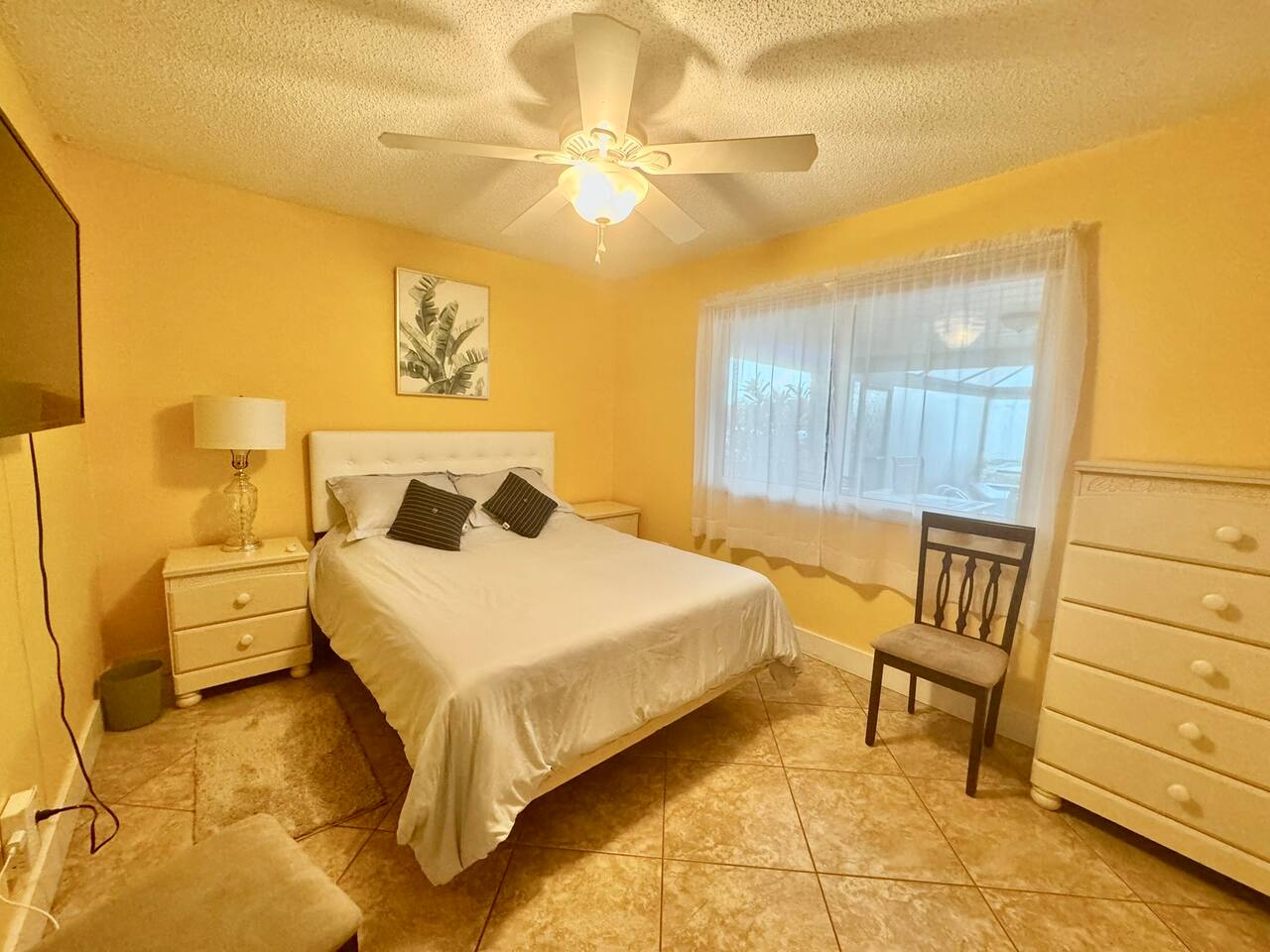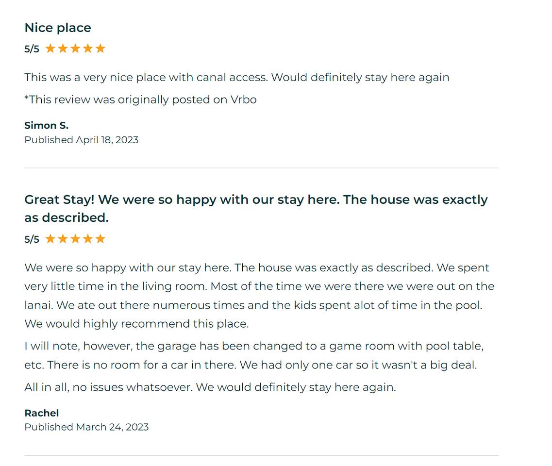Great stay overall. The driveway is spacious and newly paved, and the home was very clean upon arrival. The living room furniture was extremely comfortable. The primary bedroom was excellent—the bed was very comfortable, the bathroom had a walk-in shower with good water pressure, and the layout offered great privacy from the guest rooms. The guest room’s twin bed with trundle was also comfortable. Fitting two grown men. The pool and hot tub were a huge bonus and truly saved our trip during Florida’s record low temperatures. There’s even a burrowing owl in the front yard, which was a fun Florida touch. The management company was friendly and super responsive. We’d absolutely stay here again.